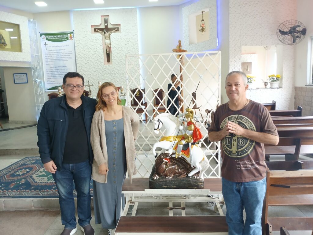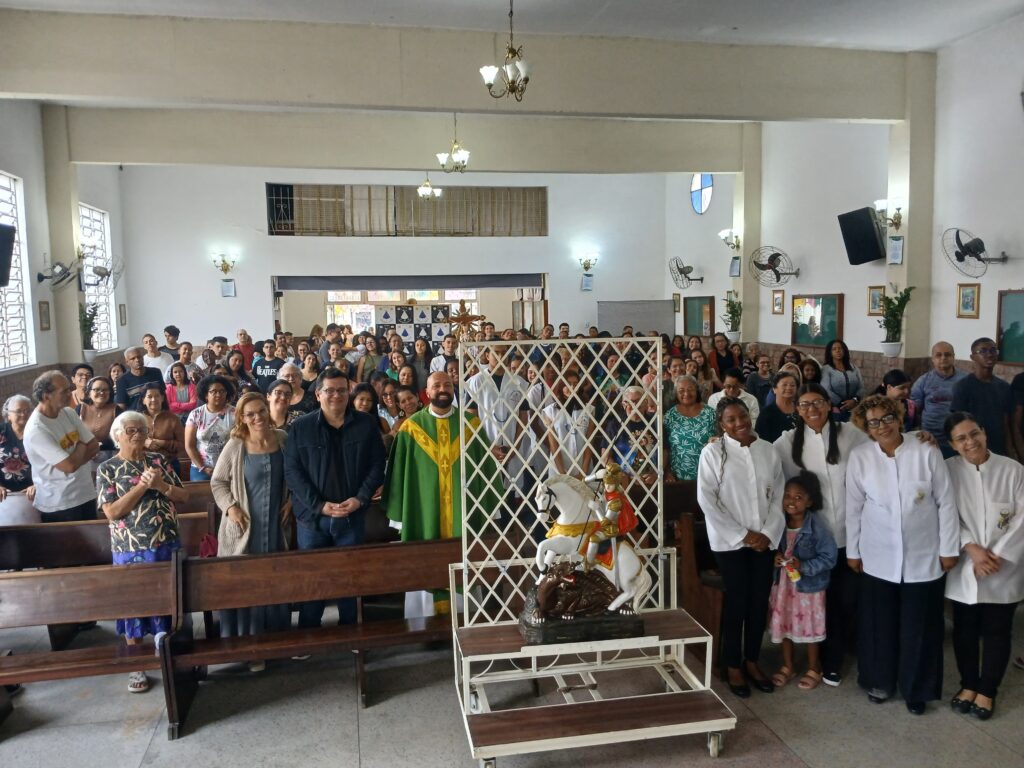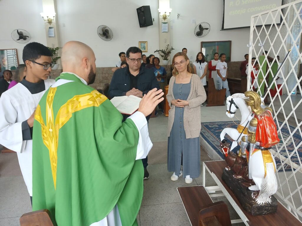 “A imagem de São Jorge chega à comunidade acompanhada de nossa oração para que Nossa Senhora Aparecida interceda por todos os paroquianos em suas batalhas pessoais, espirituais e familiares, e que a evangelização cresça e frutifique com Santo Guerreiro.”