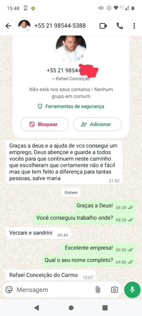 Testemunho do Rafael que participou da Ação de Empregos da Comunidade Católica Gerando Vidas e conseguiu o trabalho na empresa Verzani e Sandrini.
