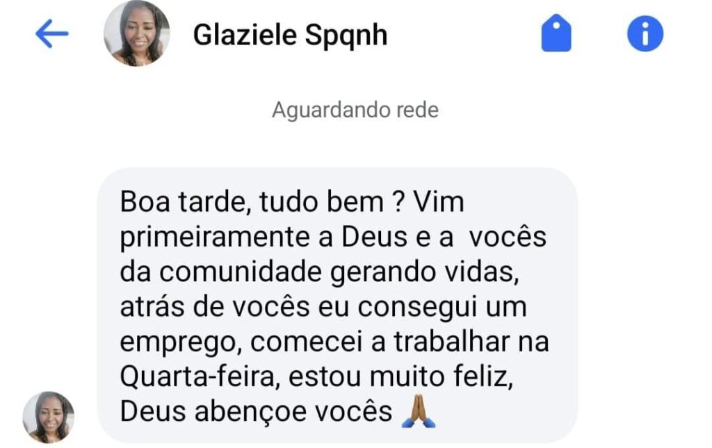 Testemunho de uma candidata que participou da Ação de Empregos da Comunidade Católica Gerando Vidas e conseguiu o trabalho.