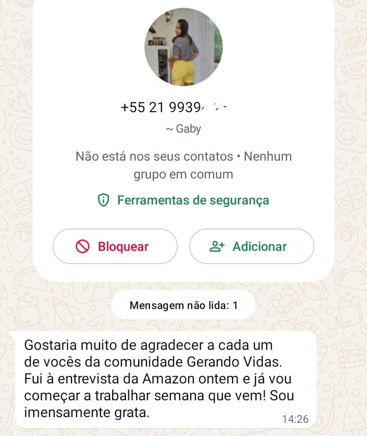 Testemunho de uma candidata que participou da Ação de Empregos da Comunidade Católica Gerando Vidas e conseguiu o trabalho na empresa AMAZON, na função de Auxiliar de Logística.