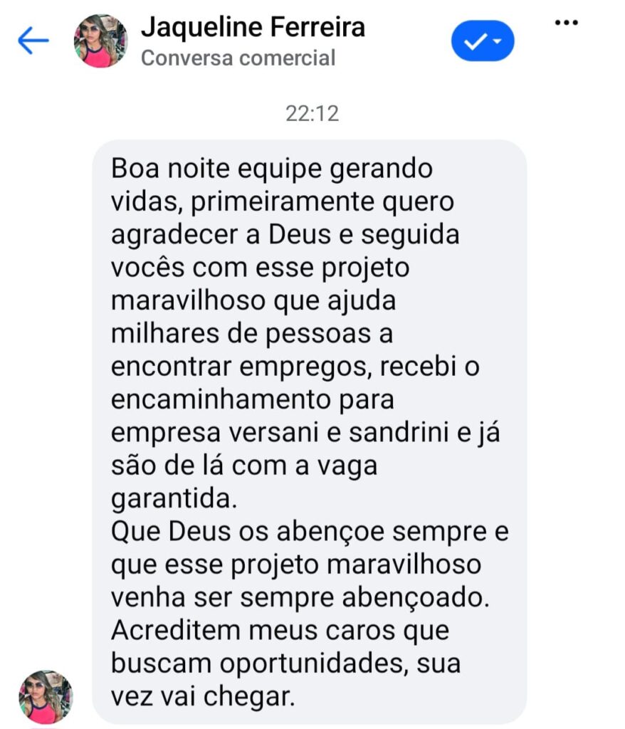Testemunho da Jaqueline que participou da Ação de Empregos da Comunidade Católica Gerando Vidas e conseguiu o trabalho na empresa Verzani e Sandrini.