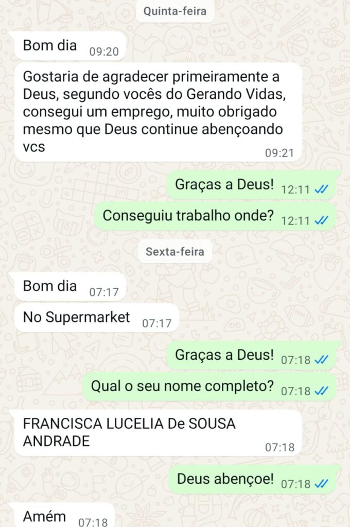 Testemunho de uma candidata que participou da Ação de Empregos do Gerando Vidas e conseguiu trabalho.