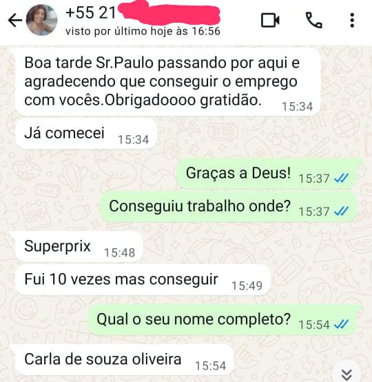 Testemunho de uma candidata que participou, PERSEVEROU e DEUS HONROU, com a conquista do TRABALHO.